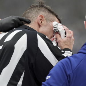 Referee Chris Rooney forced out of Game 7 after taking stick to face