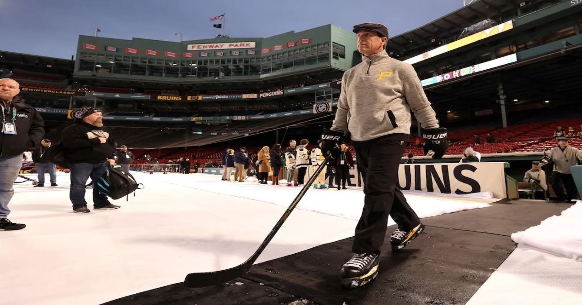 BOSTON, MASSACHUSETTS – JANUARY 01: Head coach Mike Sullivan of the Pittsburgh Penguins walks to the ice to practice for the 2023 Winter Classic at Fenway Park on January 01, 2023 in Boston, Massachusetts. (Photo by Gregory Shamus/Getty Images)