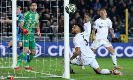 It was too easy. Emery went berserk on the touchline as Tielemans surrendered possession cheaply on halfway. Tzolis had another go at Disasi but this time the Frenchman nicked the ball and – just about – came out on top. It did not seem a great coincidence that Cash, absent since Villa triumphed against Chelsea, was sent to warm up midway through the first half. Lucas Digne ran the ball out of play under routine pressure from Ferran Jutglà and soon after Martínez prevented Brugge seizing the lead, instinctively repelling Chemsdine Talbi’s effort at the back post.