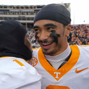 by Cole Johnson Sat, April 12th 2025 at 12:19 PM Tennessee quarterback Nico Iamaleava, right, and defensive back Rickey Gibson III, left, celebrate the team’s 36-23 win against Vanderbilt after…