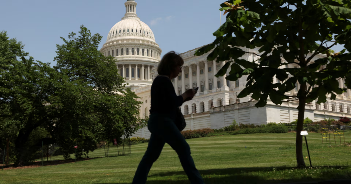 A person walks the grounds of U.S. Capitol on the day U.S. President Donald Trump’s sweeping tax bill failed to clear a key procedural hurdle as hardline Republicans demanding deeper spending cuts blocked the measure in a rare political setback for the Republican president in Congress, in Washington, D.C., U.S., May 16, 2025…. Purchase Licensing Rights