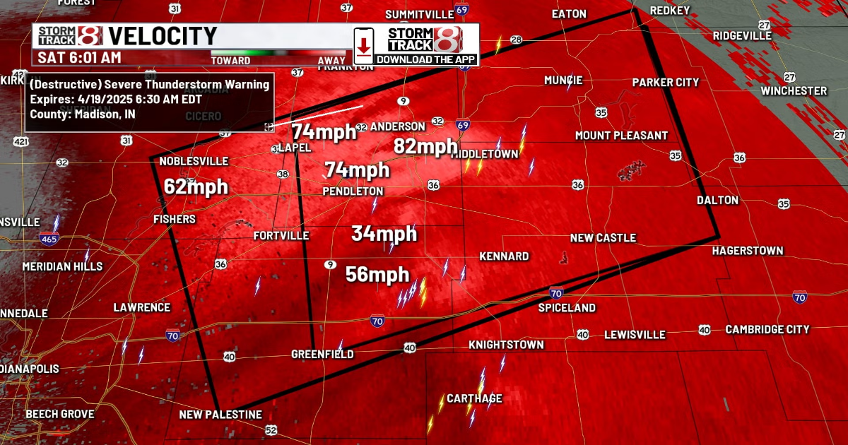 ANDERSON, Ind. (WISH) — Madison, Henry, and Delaware counties are under a severe thunderstorm warning, where destructive storms are possible.