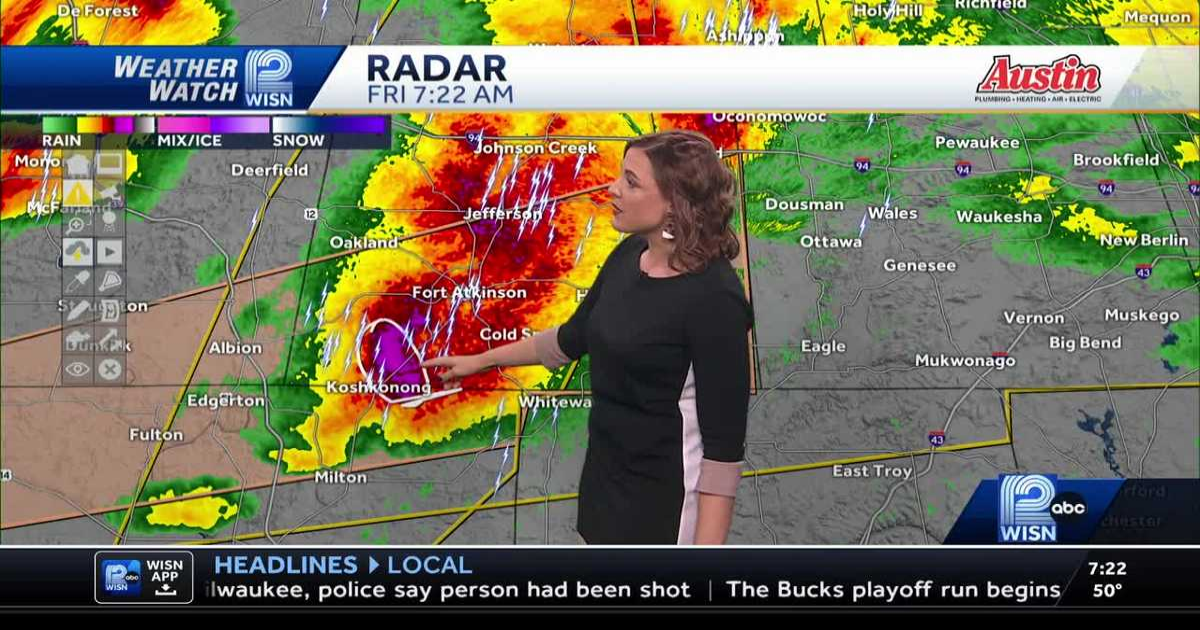 IRRITATING RESIDUES. AND IT’S. GOOD MORNING. 721 IS YOUR TIME. WE HAVE ANOTHER SEVERE THUNDERSTORM WARNING. GUYS, THIS IS A VERY LARGE SEVERE THUNDERSTORM WARNING ENCOMPASSING MUCH OF OUR AREA. YOU CAN SEE THIS BIG YELLOW BOX RIGHT HERE. THAT IS A SEVERE THUNDERSTORM WARNING THAT’S IN EFFECT WAUKESHA MILWAUKEE COUNTY OZAUKEE WASHINGTON. PORTIONS OF AREAS IN DODGE COUNTY. WE ALSO HAVE JEFFERSON COUNTY. THEN THERE’S THIS BOX RIGHT HERE. THAT’S ORANGE. THIS IS A DESTRUCTIVE SEVERE THUNDERSTORM WARNING THAT IS IN EFFECT UNTIL 745. THAT BASICALLY MEANS THAT WE ARE LOOKING AT HAIL. THAT COULD CAUSE SOME DESTRUCTION. WE’VE HAD REPORTS OF OVER TWO INCH SIZE HAIL. I’M GOING TO ACTUALLY ZOOM IN A LITTLE BIT ON THAT PARTICULAR CELL. IT LOOKS LIKE RIGHT NOW IT’S RIGHT OVER WHITEWATER. SO YOU CAN SEE RIGHT HERE AS I ZOOM IN THE MAP A LITTLE BIT JUST SOUTH OF FORT ATKINSON. AND BE RIGHT HERE, I’M GOING TO KIND OF CIRCLE THAT A LITTLE BIT FOR YOU JUST NORTH OF KOSHKONONG. THAT LITTLE BIT OF PINK THAT’S POPPING UP. THIS IS WHERE WE’VE HAD REPORTS OF TWO INCH SIZED HAIL OR EVEN BASEBALL SIZED HAIL. THIS WHOLE THING IS MOVING TO THE EAST AT ABOUT 60 MILES AN HOUR. SO IT IS IT IS FLYING THROUGH. SO IT’S GOING TO HIT AND IT’S GOING TO BE GONE VERY QUICKLY. HOWEVER, IT HAS ACTUALLY ALREADY PRODUCED SOME DAMAGE TO SOME CARS. I’VE HAD A COUPLE OF REPORTS OF THAT AS WELL. I’M GOING TO TURN THAT OFF THERE FOR YOU. SO THAT IS THE PORTION OF THE SEVERE OR THE DESTRUCTIVE SEVERE THUNDERSTORM WARNING. I’LL GO AHEAD AND DO A STORM TRACK ON THAT CELL RIGHT THERE. THE MOST STRONG THE MAINLY THE MOST STRONG PART OF THAT CELL, AGAIN, MOVING EAST NORTHEAST, IT WAS ABOUT 60 MILES AN HOUR LAST TIME I CHECKED, HEADING INTO WAUKESHA 746. THAT’S ABOUT 20 MINUTES FROM NOW, GUYS. GENESEE 742 WALES ABOUT 740 OTTAWA THERE. 737 PALMYRA 732 I REALIZED I WENT BACKWARDS, BUT NONETHELESS. JUST KEEP THIS IN MIND. YOU HAVE ABOUT I WOULD SAY RIGHT NOW FOR PALMYRA. THAT’S IN YOUR NECK OF THE WOODS AND 11 MINUTES WALES. THAT’S GOING TO BE HAPPENING IN THE NEXT 15 TO 20 MINUTES AND WAUKESHA AT ABOUT 746. AS YOU CAN SEE, THAT MOST SEVERE PART OF THAT CELL IS PUSHING ITS WAY OVER OFF TOWARDS THE EAST. THE OTHER SEVERE THUNDERSTORM WARNING RIGHT HERE, IT’S MAINLY FOR THIS WHOLE BATCH. WHAT YOU CAN EXPECT IN THE NEXT, AS I SAID, SEVERE THUNDERSTORM WARNING IN EFFECT TILL 815. SO WITHIN THE NEXT HOUR THIS IS GOING TO BE IN YOUR NECK OF THE WOODS. 815 IS WHEN THIS SEVERE THUNDERSTORM WARNING WILL BE EXPIRING. I AM HIGHLIGHTING RIGHT NOW A LOT OF LIGHTNING, A LOT OF ACTIVITY IN JOHNSON CREEK. WE HAVE THE WORST OF IT HEADING INTO WHITEWATER THAT’S GOING TO GO INTO MUKWONAGO NEXT AND WAUKESHA LIKELY GETTING TO MILWAUKEE. I WOULD SAY BY ABOUT 8:00 THIS MORNING. IT MAY DECREASE IN INTENSITY BY THAT TIME, BUT THAT IS SOMETHING THAT I AM ACTIVELY TRACKING. BUT WE’RE NOT DONE. WE ACTUALLY DO HAVE SOME MORE ACTIVITY AS WELL. I’M GOING TO TURN THIS OFF RIGHT HERE. AND YOU CAN SEE JUST BEHIND THIS CLUSTER THERE IS A LOT MORE ACTIVITY RIGHT THERE. SO WE HAVE TO GET THROUGH ALL OF THIS AS WELL BEFORE WE ARE ALL DONE WITH THIS FIRST BATCH OF ACTIVITY. AND THEN WE WILL BE GOOD TO GO FOR THE REST OF AT LEAST THE MORNING. THE AFTERNOON DOES FEATURE ANOTHER POTENTIAL CHANCE OF STRONG STORMS, AS LONG AS WE CAN GET SUNSHINE. IF WE DON’T, THE STORMS WON’T BE AS BAD. SO TO REITERATE, A BRAND NEW SEVERE THUNDERSTORM WARNING IS IN EFFECT FOR AREAS AS YOU SEE HERE IN THIS BIG ORANGE BOX. WASHINGTON COUNTY PORTIONS OF DODGE COUNTY, ALSO INTO JEFFERSON COUNTY, WAUKESHA, MILWAUKEE, AND OZAUKEE THAT WILL CONTINUE UNTIL ABOUT 815. I’M GOING TO SE